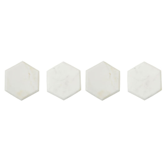 Hexagon White Marble Coasters - Set of 4