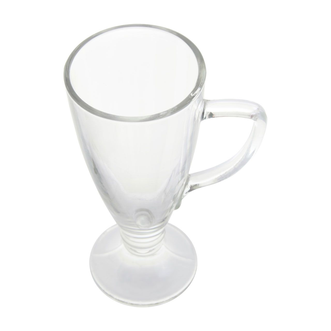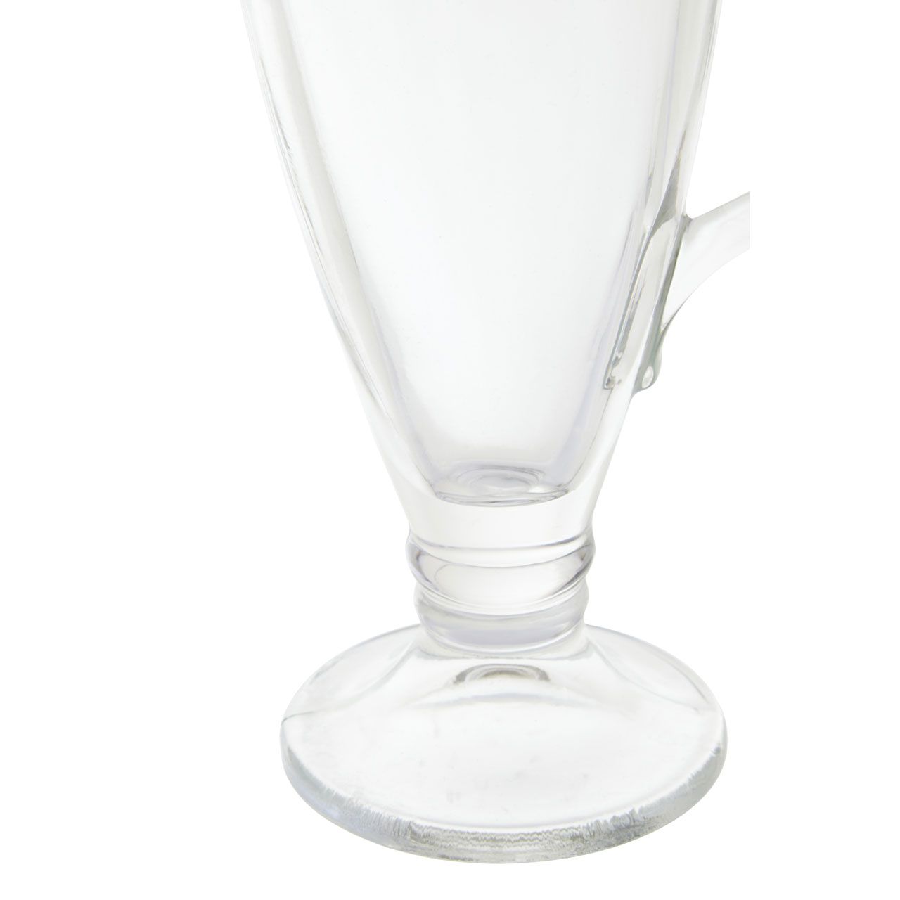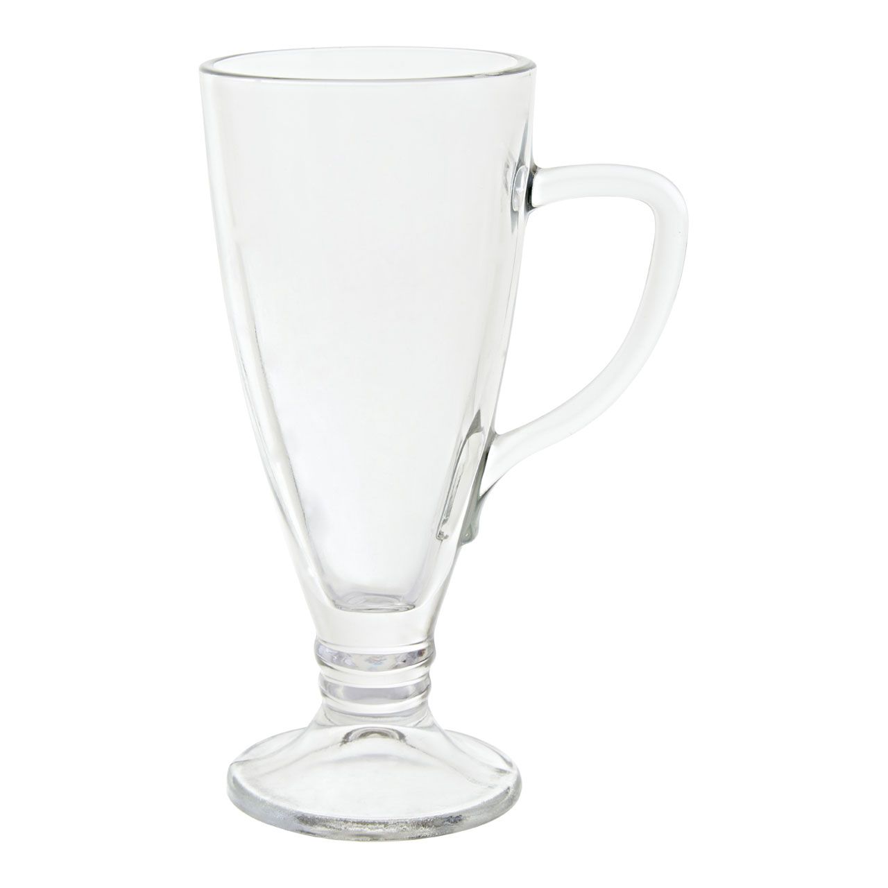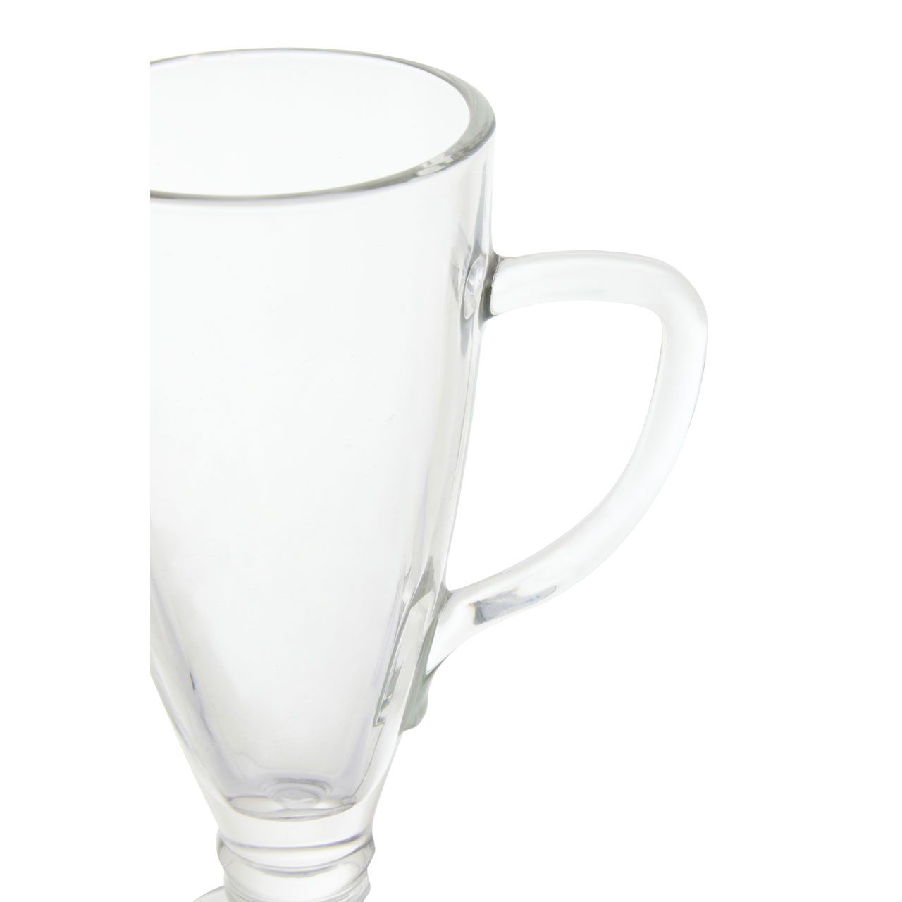 Suitable for most occasions, this set of four mugs is leakproof and offers multipurpose use. Made from sturdy clear glass, this set of four latte glasses is ideal to serve latte, cappuccino, tea, or coffee in style. The tapered design with a curved handle is complete with a footed base that brings stability.