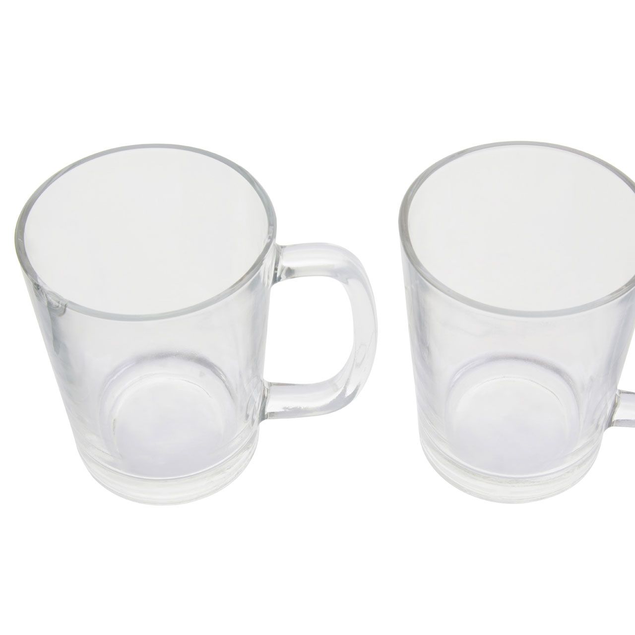 Functional yet stylish, this set of clear mugs with a stepped base is ideal for occasional or everyday use. Ideal to serve hot or cold beverages in style, this set of four clear glass mugs has a tapered design with a wide, easy-to-grip handle. The aesthetically pleasing non-conductive design will not hold flavors from previous contents.