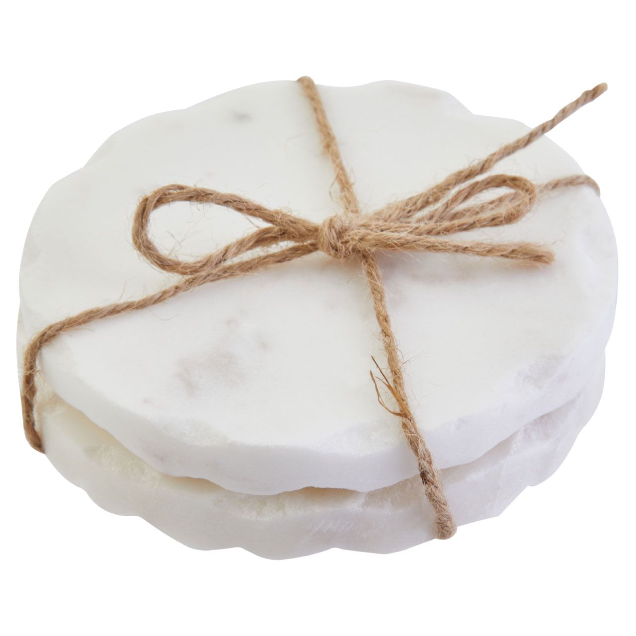 Classic set of four white rough edge coasters. This set of four white marble rouge edge coasters are a great way to elevate a modern space, with the edge giving an extra modern edge.