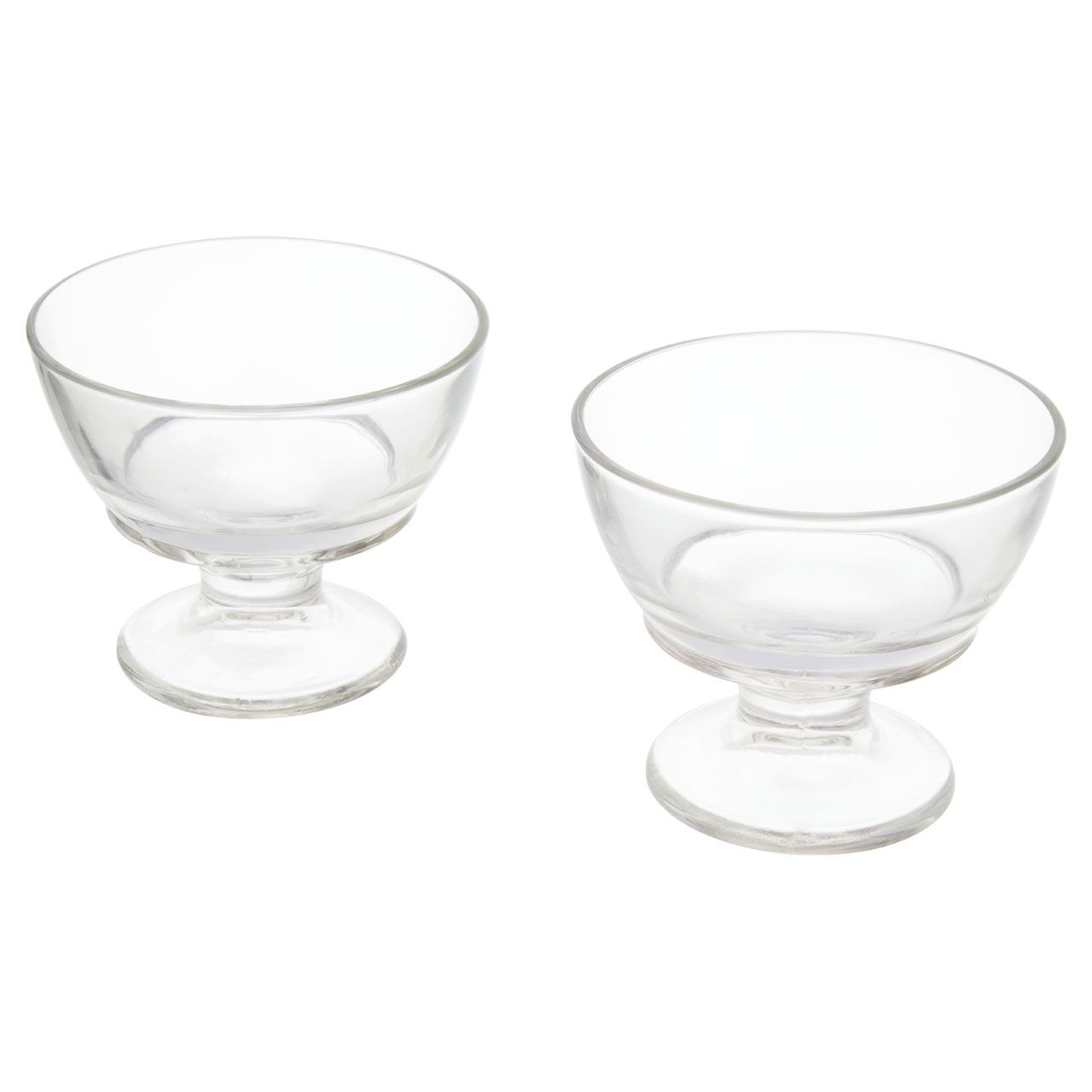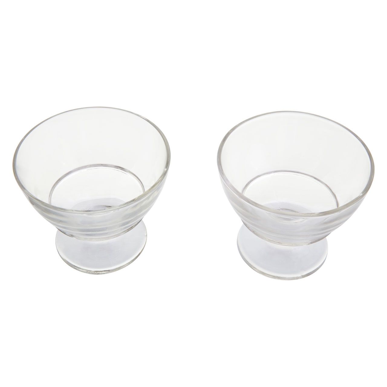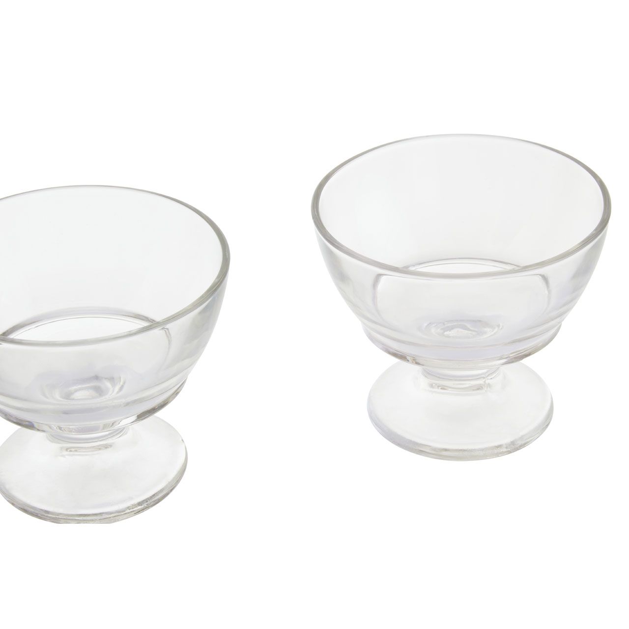 These dishes in a minimal accent and round pedestal base will make a chic addition to serveware. Crafted from sturdy glass, this set of four sundae dishes is a must-have addition to the kitchen. Each dish features a wide bowl with a footed base, ideal to serve gourmet desserts in a classic style.