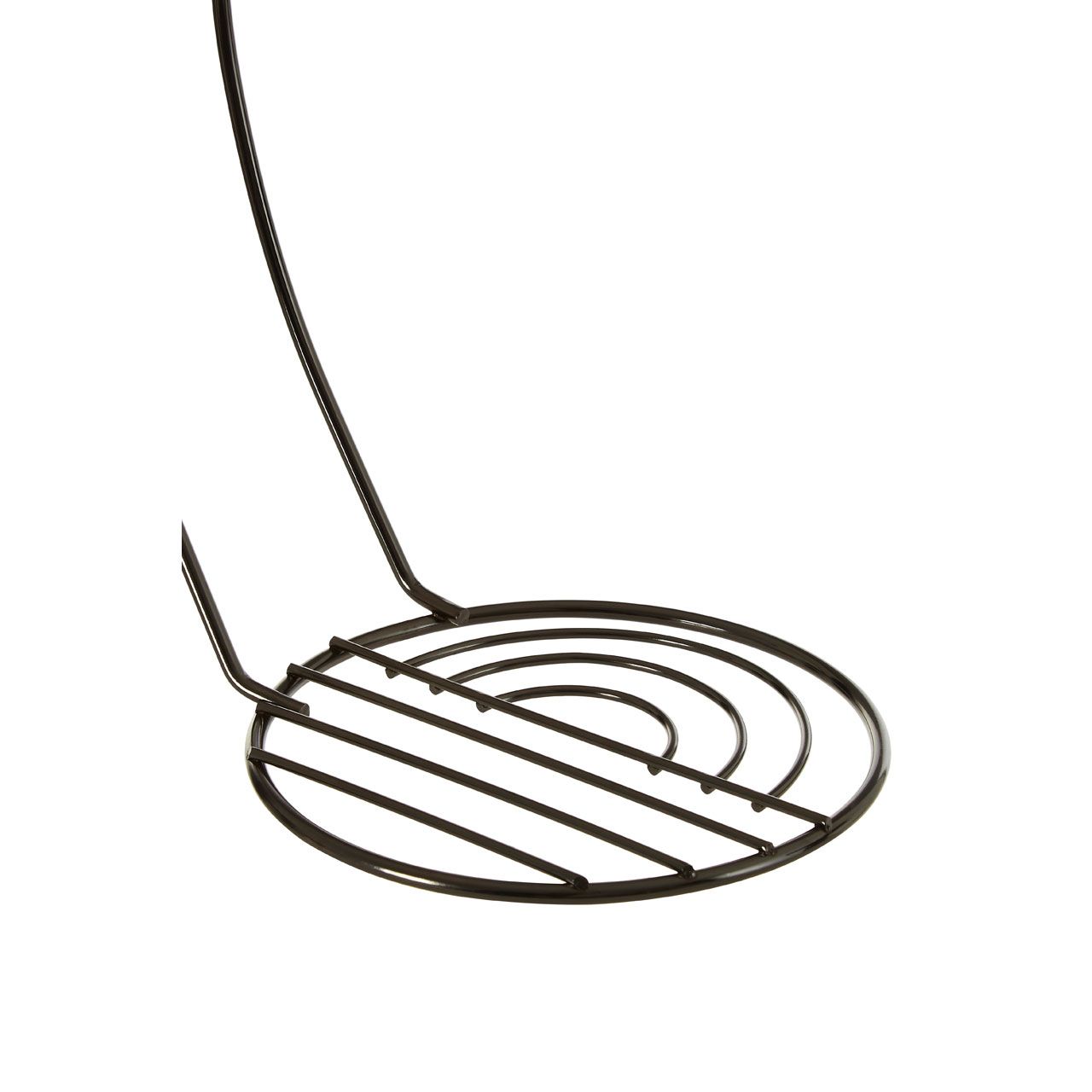 The base of this banana holder combines straigh and curved lines for an asymmetric look. Crafted from robust iron, this curving banana holder has a large hook which allows air to circulate around the fruit. This prevents the bananas from ripening too quickly, thus helping to preserve the fruit. Its base is wide and round to ensure that the hanger remains stable. With its black nickel coating it adds a sleek, contemporary touch to the kitchen.