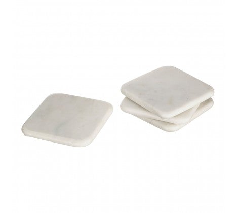 White Marble Square Rounded Coasters - Set of 4
